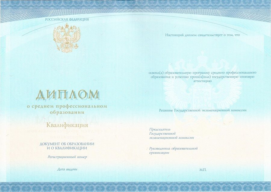 - Академическая степень: О среднем профессиональном образовании с отличием